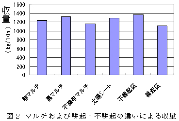図2 マルチおよび耕起・不耕起の違いによる収量 |