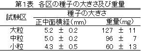 表1 各区の種子の大きさ及び重量