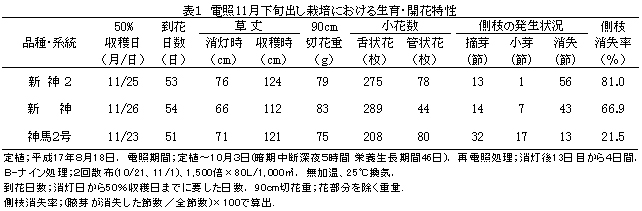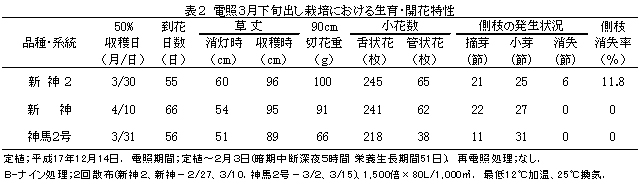 表2 電照3月下旬出し栽培における生育・開花特性