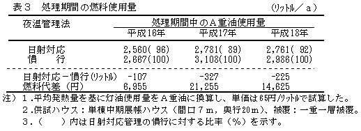 燃料消費量は慣行管理に比べて4〜10%少なく、暖房費が削減される(表3)。