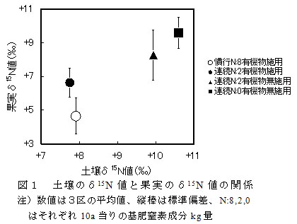図1 土壌のδ15N値と果実のδ15N値の関係