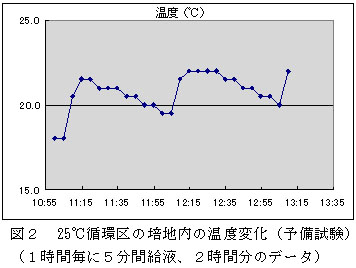 図2 25℃循環区の培地内の温度変化(予備試験)
