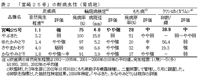 表2 「宮崎25号」の耐病虫性(育成地)