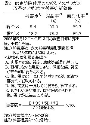 表2 総合防除体系におけるアスパラガス若茎のアザミウマ被害抑制効果