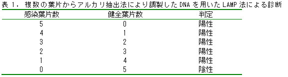 表1 複数の葉片からアルカリ抽出法により調製したDNAを用いたLAMP法による診断