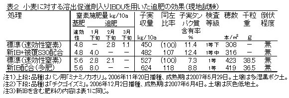 表2 小麦に対する溶出促進剤入りIBDUを用いた追肥の効果(現地試験)