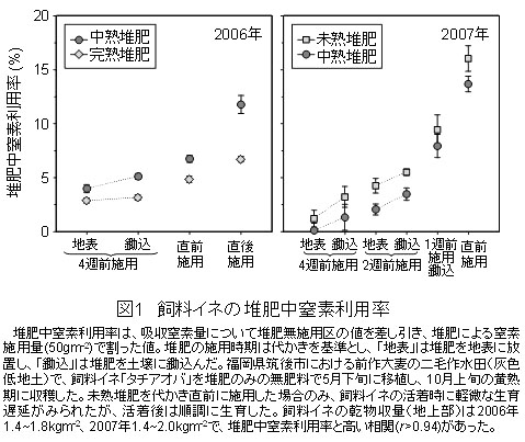 牛ふん堆肥の施用時期が飼料イネの窒素利用率に与える影響