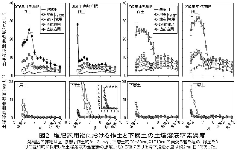 図2 堆肥施用後における作土と下層土の土壌溶液窒素濃度