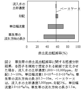 - センチピードグラス、草生帯、赤土流出軽減率、設置長さ、モデル解析
