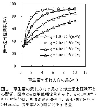 赤土流出軽減のための草生帯の流水の流れ方向の長さを決める際の参考資料となる。