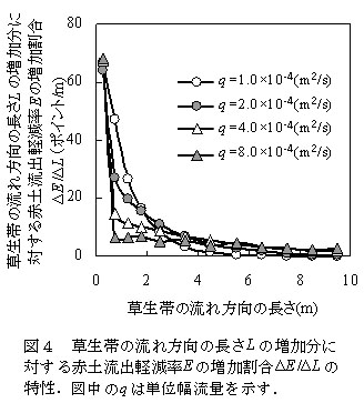 図4 草生帯の流れ方向の長さLの増加分に対する赤土流出軽減Eの増加割合ΔE/ΔLの特性