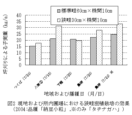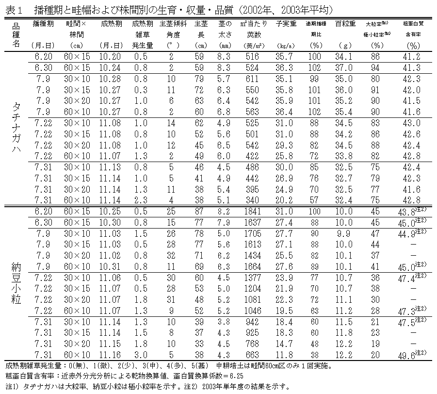 ダイズ「タチナガハ」および「納豆小粒」の晩播栽培における狭畦密植栽培技術 |