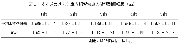 [キーワード]オオメカメムシ、幼虫齢期推定、頭幅長、成虫越冬、生活史 |