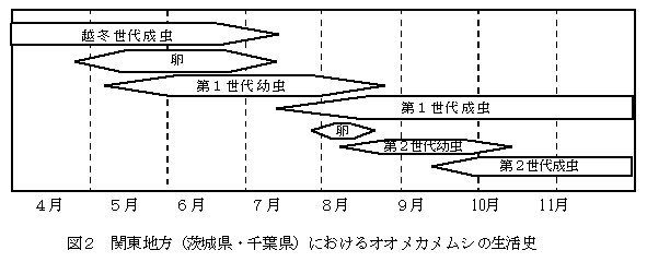 オオメカメムシの発育段階の推移にもとづく生活史の推定 |