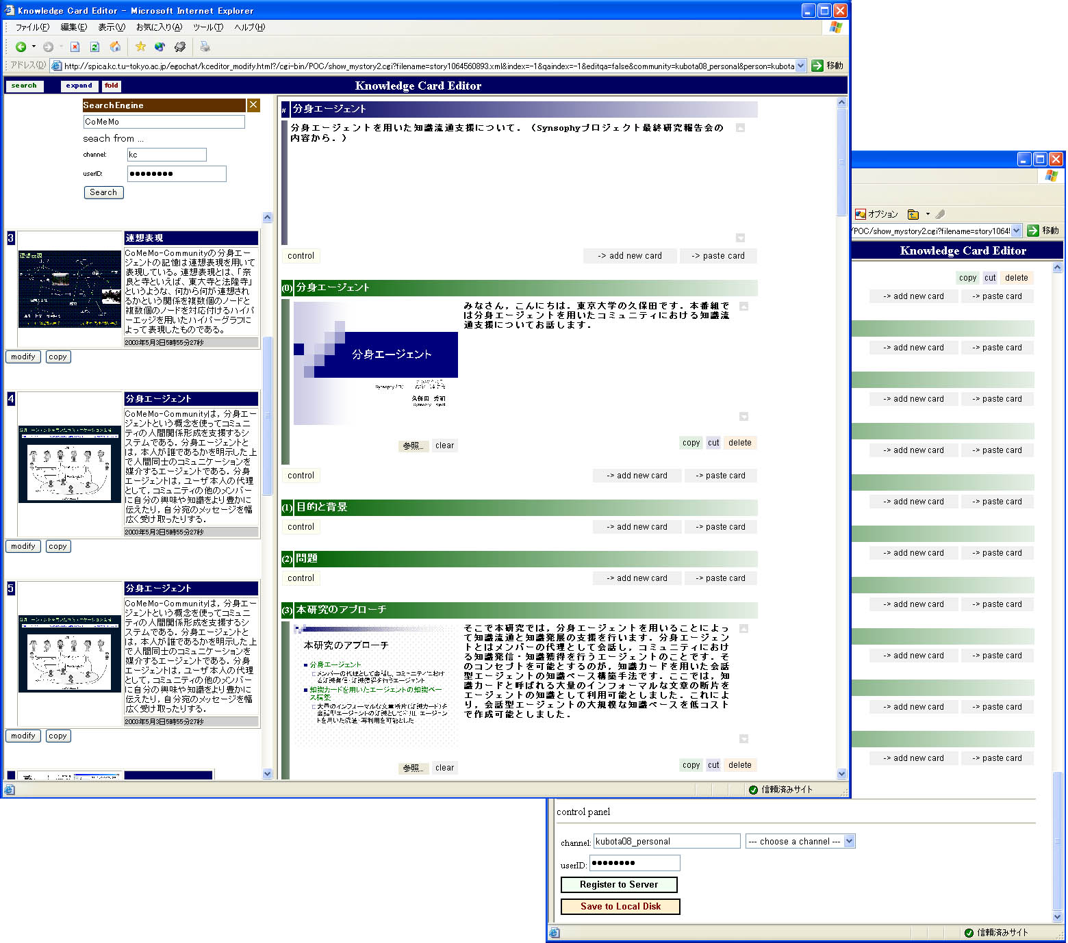 - [久保田2003] 久保田 秀和, 黒橋 禎夫, 西田 豊明:知識カードを用いた分身エージェント,電子情報通信学会論文誌