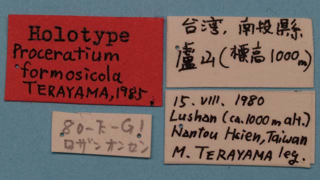 | Ref.: | Terayama, M., 1985. Description of a new species of the genus Proceratium Roger from Taiwan (Hymenoptera, Formicidae). Kontyû, Tokyo 53(3): 406-408. |