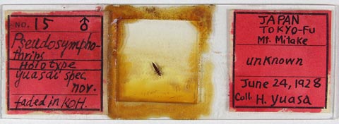 | Ref.: | Kurosawa, 1954. Thrips collected by Dr. Hiroharu Yuasa with description of a new species. Oyo-Kontyu, Tokyo 10(2): 134-136. |