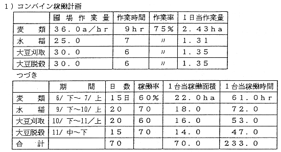 表1 コンバイン稼動計画