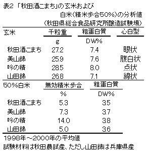 玄米は眼状の心白の発現が良好で、精米試験では無効精米歩合が低く「山田錦」並に良好である(表2)。 |