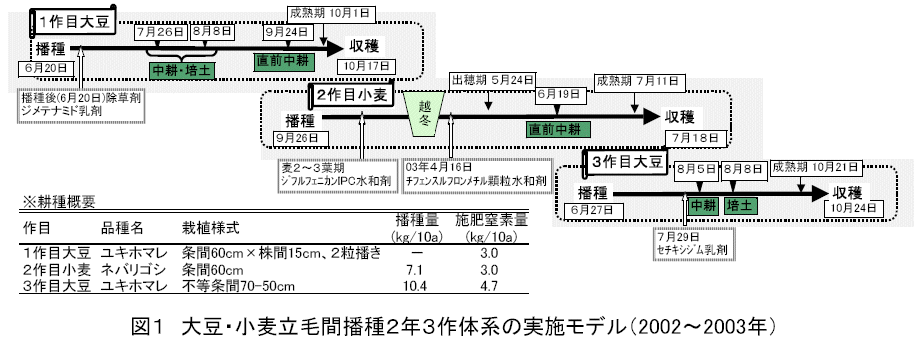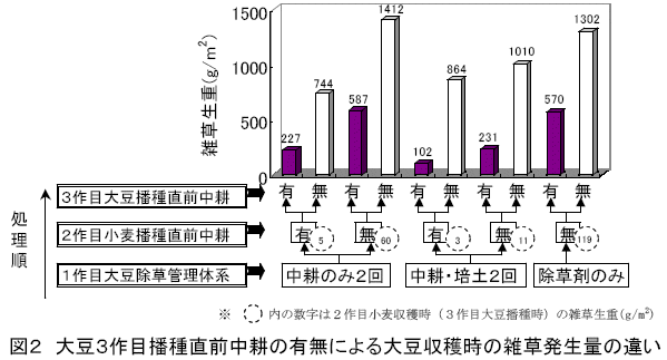 畑地帯における大豆・小麦立毛間播種栽培の雑草管理技術 |