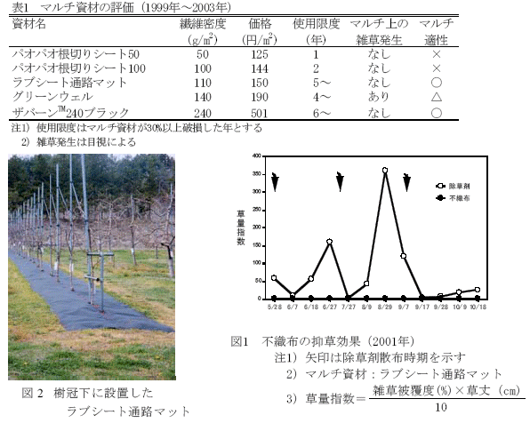不織布、マルチ、リンゴ、わい化栽培、雑草管理