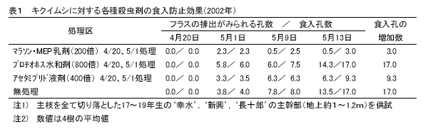 ニホンナシを加害するキクイムシ類に対する防除薬剤の検索 |