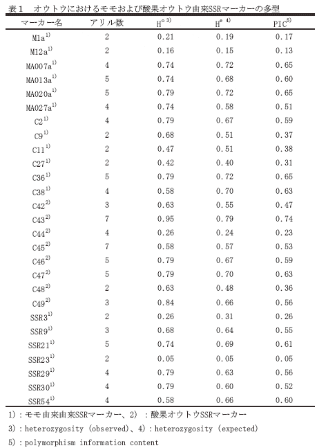 モモおよびオウトウSSRマーカーは、(独)果樹研より分譲を受けたものである。 |