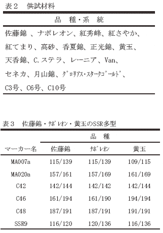 19品種・系統以外についても、SSR分析を行うことで品種判別が可能と考えられる。 |