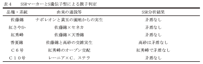 親子判定は、育成された状況やS遺伝子型等の情報とあわせて判断する。 |