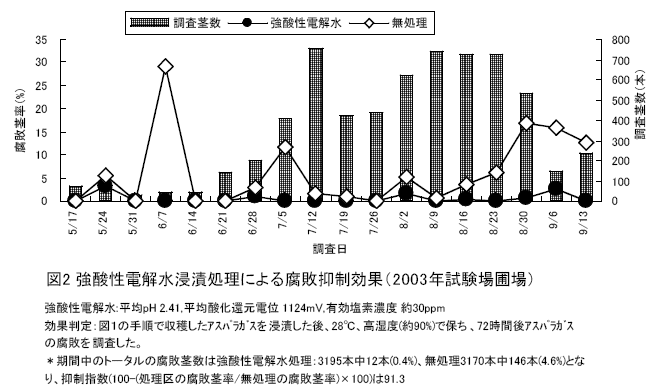 強酸性電解水浸漬による収穫後のアスパラガスの腐敗抑制技術 |