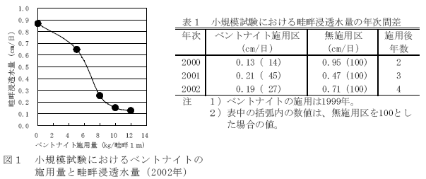 ベントナイトを施用した畦畔の漏水防止効果は4年間以上持続する(表1)。 |