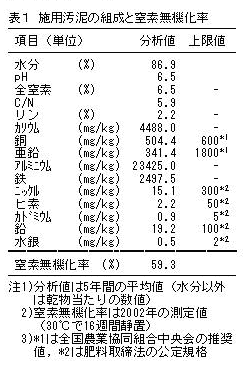汚泥は乾物換算で10アール当たり年間270 kg程度の畑地への施用であれば、窒素肥料として有効利用が可能である。 |