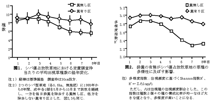 放牧牛の排糞はシバ型草地植生の種多様性を維持する |