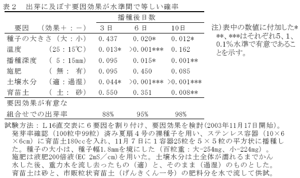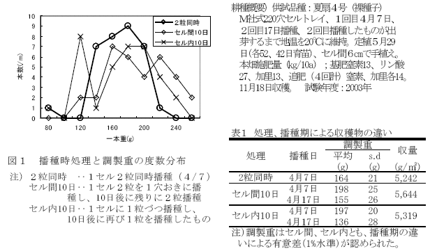 ネギのセルトレイ育苗における出芽揃いの要因解析と収穫物への影響 |
