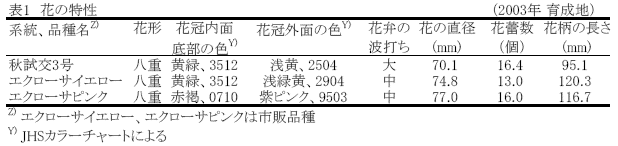 黄八重咲のトルコギキョウ新品種候補「秋試交3号」の育成と特性 |