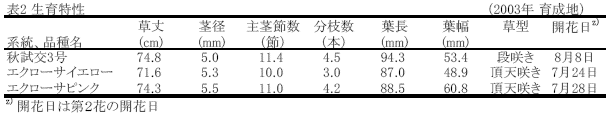 研究課題名:ブランド花き・地域特産花き等の新品種育成 予算区分:県単 研究期間:1996〜2003年度 研究担当者:間藤正美、檜森靖則、佐藤孝夫、柴田浩、浅利幸男 |