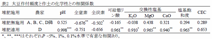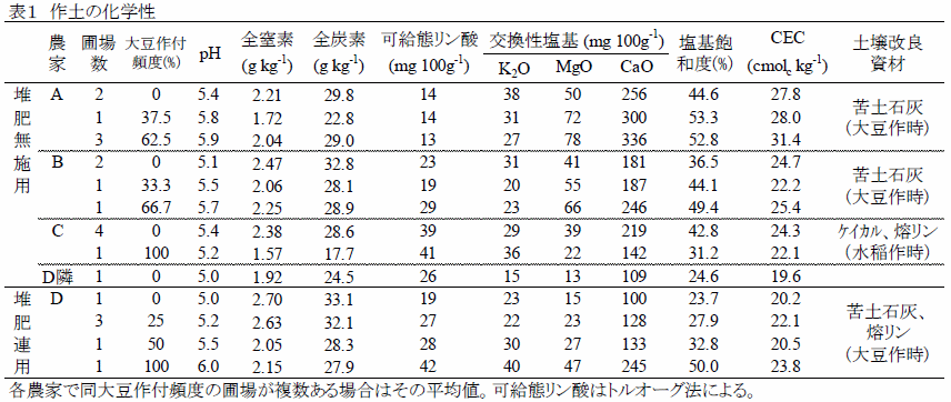 田畑輪換、水田土壌、可給態窒素、牛ふん堆肥、大豆作付頻度