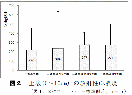 - 本試験は原発事故後2年目の黒ボク土での結果であり、他の土壌条件では別途検討を要する。