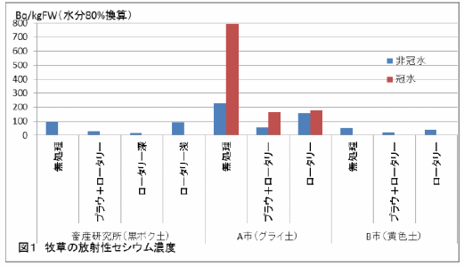 - 草地更新後の外的要因(冠水等)により再汚染の可能性があり、牧草への移行が高くなる場合がある(図1、2)。