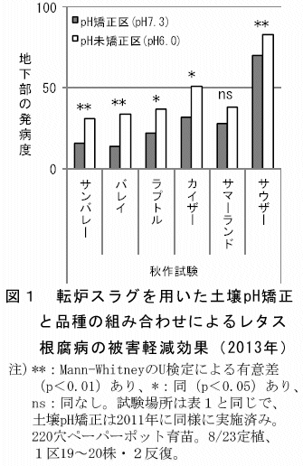転炉スラグ、土壌pH矯正、品種、ペーパーポット育苗、レタス根腐病