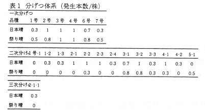 - 分げつの構成は一次分げつ中心で、有効茎歩合はやや高くなる(表1)。