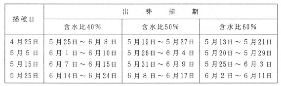 - 播種日から予想される出芽揃期の目安は以下のとおりである。