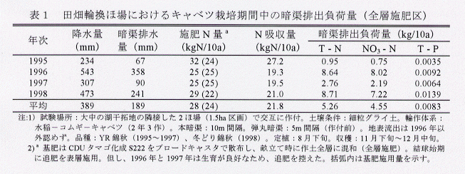- 近年、米の需給調整政策により、野菜などの高収益作物を組み合わせた田畑輪換栽培が増加しているが、水稲に比べて施肥量も多く、硝酸態窒素の流出負荷増大が懸念される。