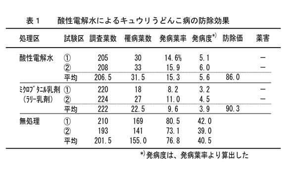 | [成果情報名] | 酸性電解水散布によるトマト、キュウリうどんこ病の防除 |