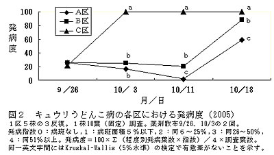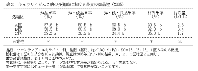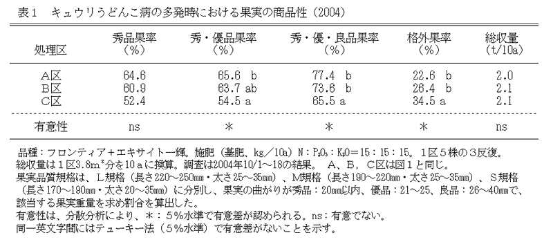 | [成果情報名] | キュウリうどんこ病の多発が果実の商品性に及ぼす影響 |
