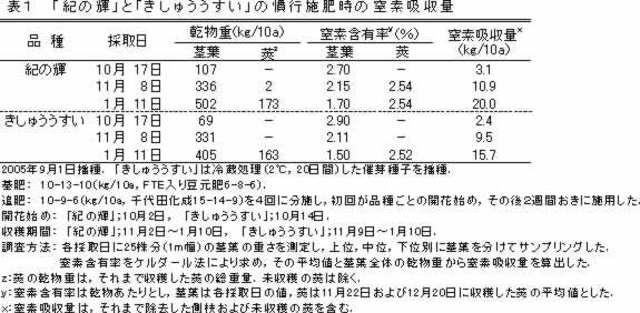 | [キーワード] | 実エンドウ、夏まき年内どり、窒素吸収量、施肥量、紀の輝 |
