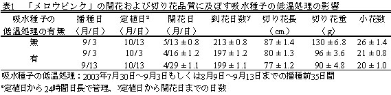 | [キーワード] | トルコギキョウ、吸水種子、低温処理、長日処理、開花促進 |