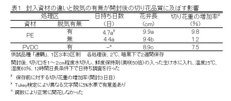 | [要約] | 脱気・密封保存中の切り花ボタンは呼吸を行っている。また、脱気することでエチレン発生量が増加しない。 |