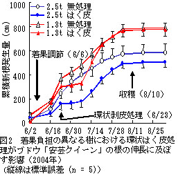 | [要約] | 環状はく皮と着果負担の軽減を組み合わせると、着色向上効果が大きく、温暖地で栽培されている 赤色ブドウ「安芸クイーン」の着色改善に有効である。 |