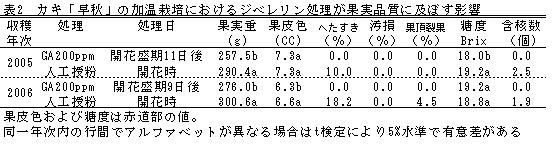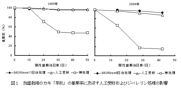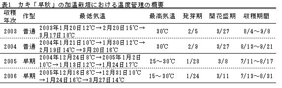 | [成果情報名] | カキ「早秋」の加温栽培特性と着果対策 |